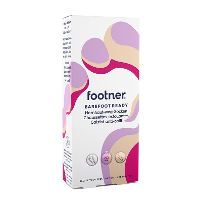 - 3. Damit das Produkt gut wirken kann, sollten die Footner Socken 60 Minuten getragen werden. Um die richtige Anwendungsdauer zu gewährleisten, empfiehlt sich die Verwendung eines Weckers oder einer Küchenuhr. Wir empfehlen, die Füsse in normaler, aufrechter Position zu halten, um ein Auslaufen der Flüssigkeit zu vermeiden.