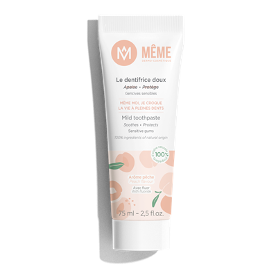 Die Zahnpasta von Même enthält kein Menthol oder Pfefferminzaroma, die den Mund reizen. Die Zahnpasta ist jedoch mit Fluorid angereichert, um den Zahnschmelz wirksam vor Plaque und Karies zu schützen. Mit Pfirsichgeschmack und 100 % natürliche Inhaltsstoffe.