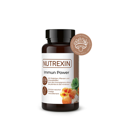 Nutrexin Immun Power ist eine neue, innovative Kombination von Pilz- und Pflanzen-Extrakten, mit Vitaminen und Mineralstoffen. Die hochwertigen Inhaltsstoffe machen dieses Produkt zu einem einzigartigen Immun-Stimulator. Die Kombination von Vitalpilzen mit Pflanzenextrakten, sowie Vitaminen und Mineralstoffen, ermöglicht einen optimalen präventiven Schutz vor Infektionen und eine starke Unterstützung bei Krankheitssymptomen.